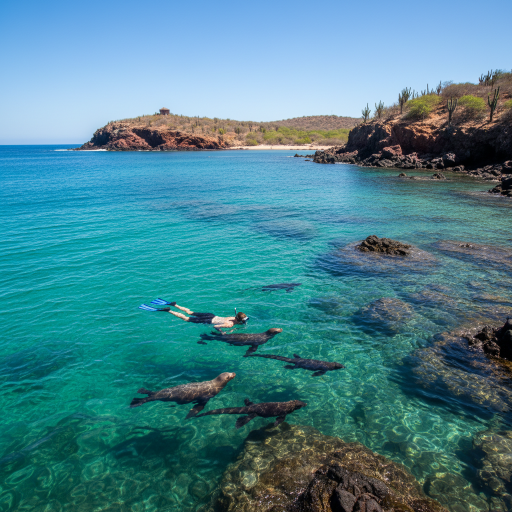 - 이사벨라 섬 - 콘차 페를라 (Concha de Perla): 공동체 분위기가 느껴지는 천연 수영장 같은 스노클링 포인트입니다. 펭귄, 바다사자, 다양한 어종을 볼 수 있어 가족 여행객에게도 완벽합니다.